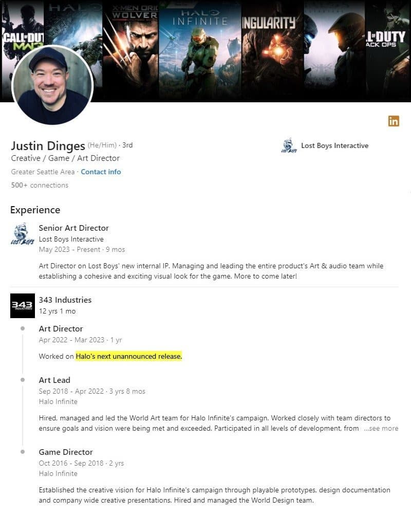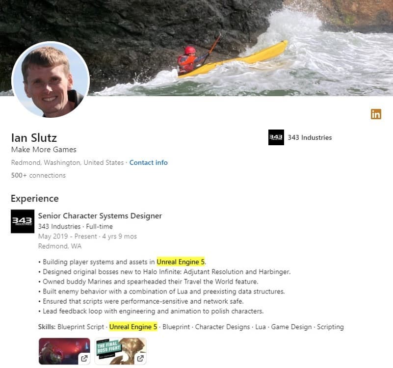 Бывший арт-директор Джастин Дингес указал в профиле LinkedIn, что работает над «неанонсированной частью Halo» с апреля 2022 года, а Ян Слутц, старший системный дизайнер, упомянул, что готовит контент на Unreal Engine 5. Тем самым подтвердились слухи, что студия Microsoft отказалась от собственного движка ради разработки следующего шутера на технологии Epic Games.