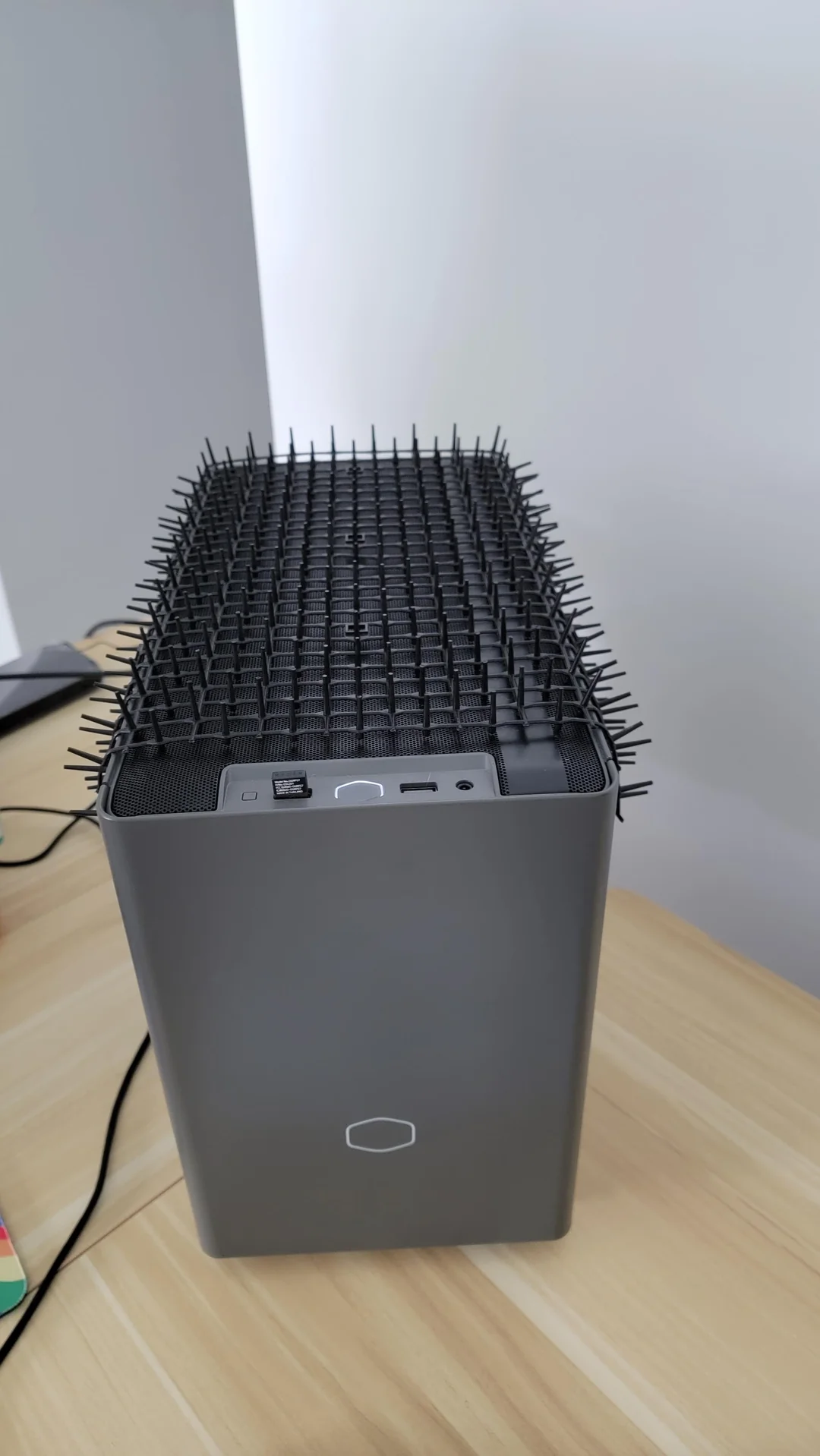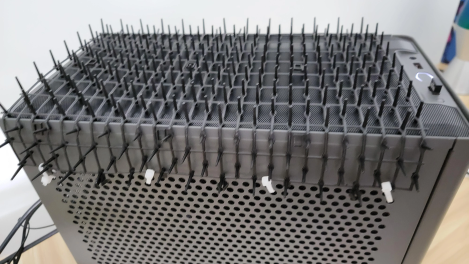 voidurwarranty решил проблему радикально — установил на корпус ПК шипы: верхняя часть перестала быть привлекательной лежанкой. Котик постарше проверил шипы лапой и быстро пришло понимание, что пора искать другое местечко.