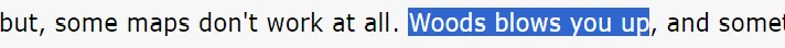 Взрывной эффект на карте Woods связывают с 2 вещами. С наличием тела за пределами игровой зоны, предполагается, что в момент активации чита игроки что-то запускают и их «настигает карма» (или просто задевают минные поля). Также есть проверка координат, если система истолкует их как выход за пределы карты — взрыв.