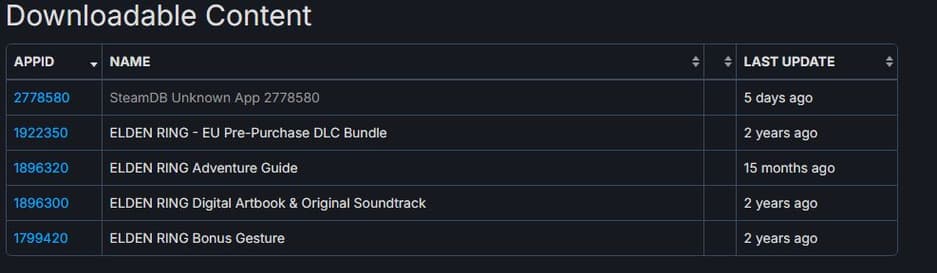 Пользователи форума ResetEra обратили внимание на появление неизвестной позиции в списке дополнений для Elden Ring. К чему именно относится SteamDB Unknown App 2778580 на данный момент неизвестно.