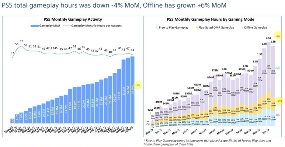 На левом слайде представлен график ежемесячной активности игроков на PS5 (другие слайды можно найти здесь)