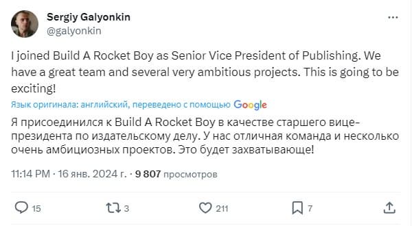 Напомним, с октября 2023 года Галёнкин не работает в Epic Games, где провёл 7 лет и 8 месяцев. Он запускал магазин EGS, продумывал концепцию и стратегию развития.