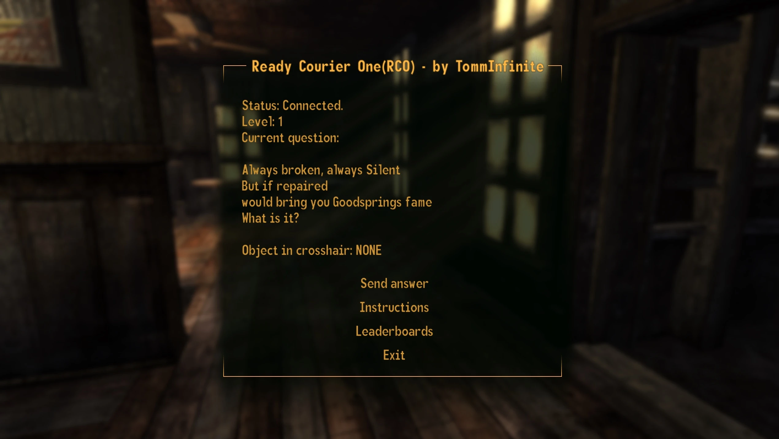 Необходимо поместить «ответ» в перекрестие прицела и нажать N, чтобы послать ответ; повторять до победы. Этим «ответом» может быть что угодно, например какой-нибудь статический объект или NPC. Иногда ответов может быть несколько (но придётся найти лишь один из них).