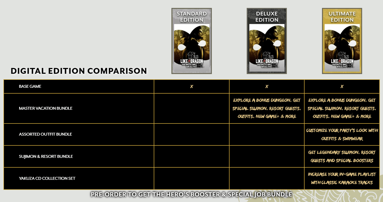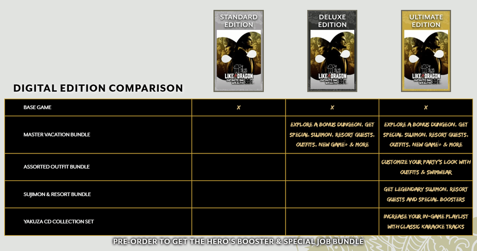 SEGA решила сделать режим «Новая игра+» в Like a Dragon: Infinite Wealth привилегией лишь для тех игроков, которые потратят 85 и 110 долларов США на издания Deluxe и Ultimate соответственно. Покупателям базового издания за 70 долларов режим будет недоступен.