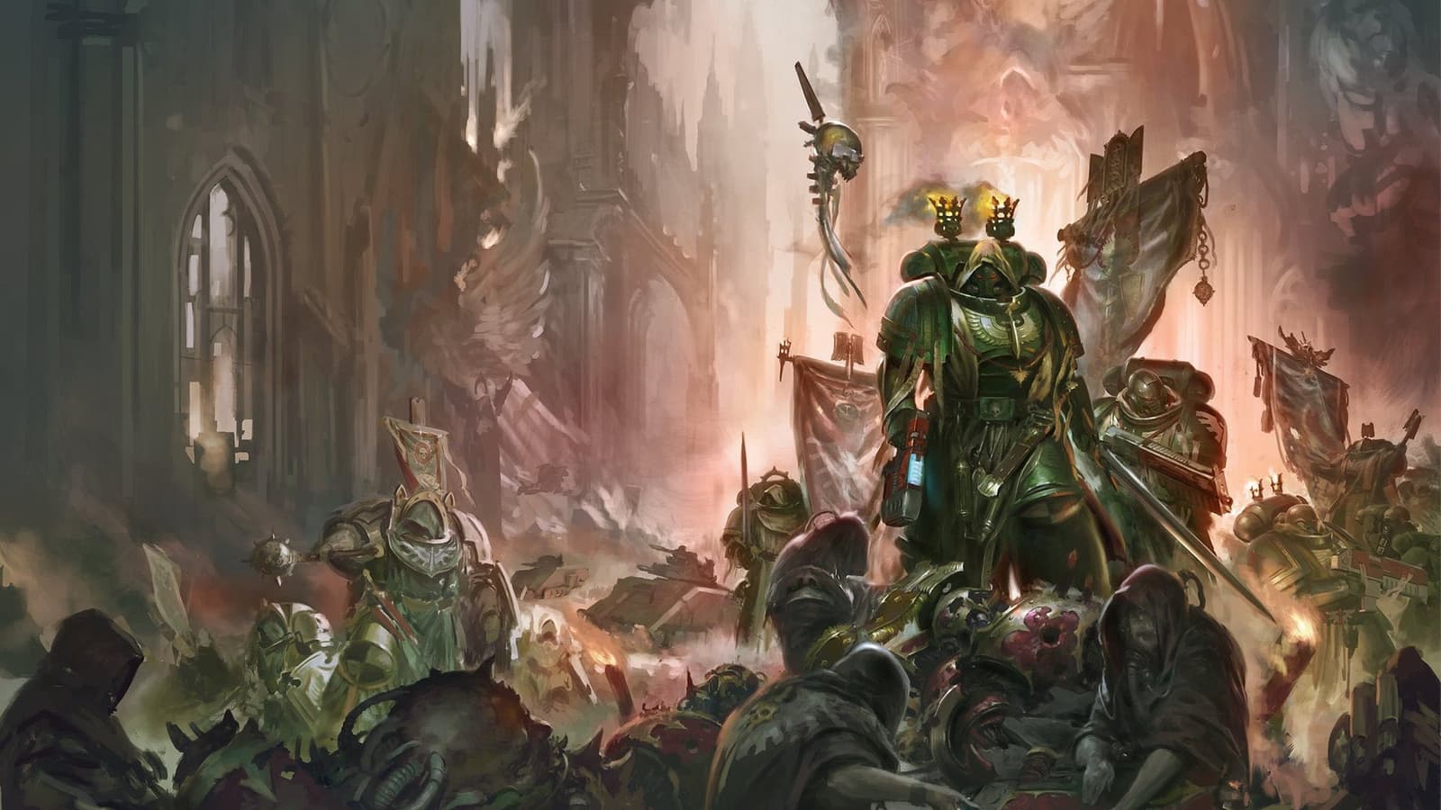 Находки датамайнеров обобщил аккаунт Fumo Leaks в Twitter. Первыми на очереди стоят загрузочные экраны. На одном из них изображены космические пехотинцы, представляющие орден Темных Ангелов, во время битвы на планете Писцина IV. Есть также сестры из Адепта Сороритас в виде обложки из книги Pilgrims of Fire.
