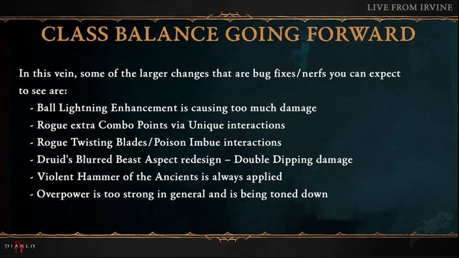 Во время презентации Blizzard объявила, что исправит некоторые ошибки второго сезона. В связи с этим некоторые из самых сильных билдов ослабят.