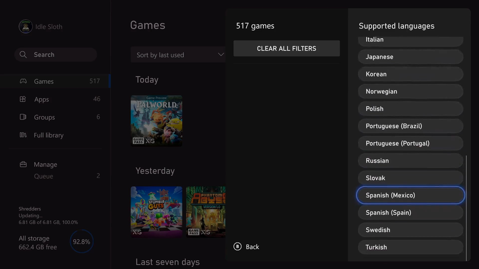 Недавно для Xbox Insider представили обновление прошивки консолей Xbox One и Xbox Series X|S с набором фильтров. Теперь чуть удобнее искать игры в разделе «Мои игры и приложения».
