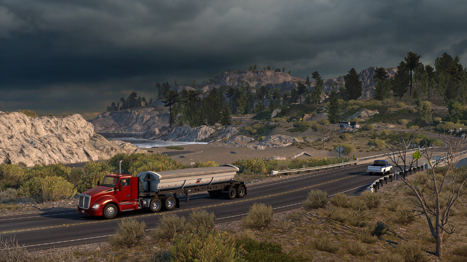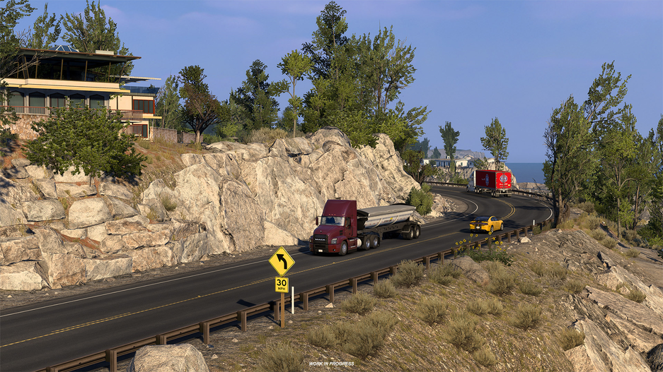 В подборку скриншотов American Truck Simulator вошла легендарная прибрежная трасса CA-1/US-1, можно будет увидеть виртуальное воплощение таких регионов как: Биг-Сур, Сан-Карпофоро-Крик, Уиллоу-Крик.