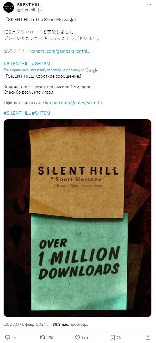 The Short Message появилась на PlayStation 5 сразу после официального анонса. Konami сообщила о количестве скачиваний условно-бесплатной игры.
