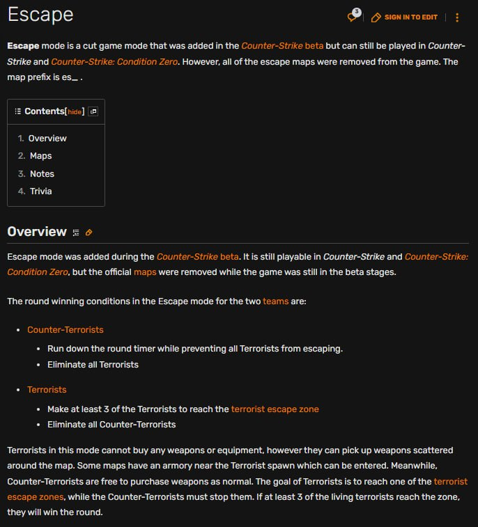 VIP и Escape - это старые / вырезанные режимы игры из предыдущих Counter-Strikes».
