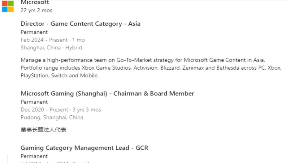 Гэри Чен - директор по игровому контенту в Азии. После недавней смены должности решил обновить свой профиль на LinkedIn. Геймеры сразу заметили отрывок, в котором Чен упоминает управление командой в Азии, а также пишет, что портфолио относится ко всем командам Microsoft: Xbox Games Studios, Activision, Blizzard, Zenimax и Bethesda. Что особенно важно, он перечисляет все платформы, для которых будут разрабатываться игры вышеупомянутых команд: ПК, Xbox, PlayStation, Switch и мобильные устройства.