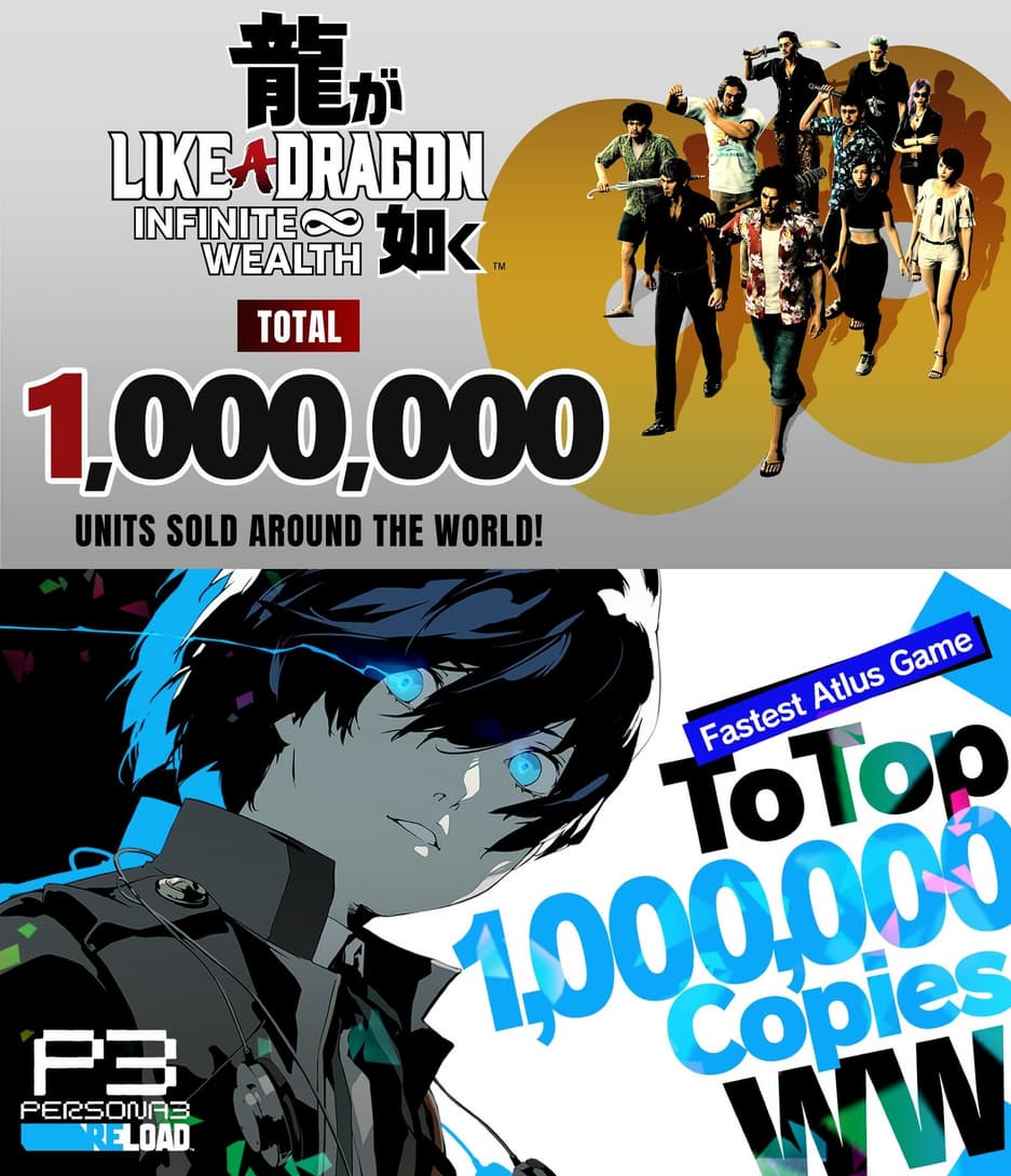 Like A Dragon Infinite Wealth и Persona 3 Reload стали самыми быстро продаваемыми в истории студий-разработчиков. Кроме того, количество игроков Persona 3 Reload наверняка ещё больше, ведь игра стартовала в сервисе Game Pass от Microsoft.