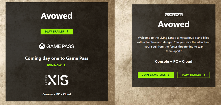 В голове сразу выстроилась картина: игры собрались выпустить и на PlayStation, поэтому теперь на страницах в списке платформ и указана просто формулировка «Консоль | ПК» (раньше над ней возвышалось лого Xbox, на пример Avowed это выглядит так — слева старая страница, а справа новая, кадры за 2023 год).
