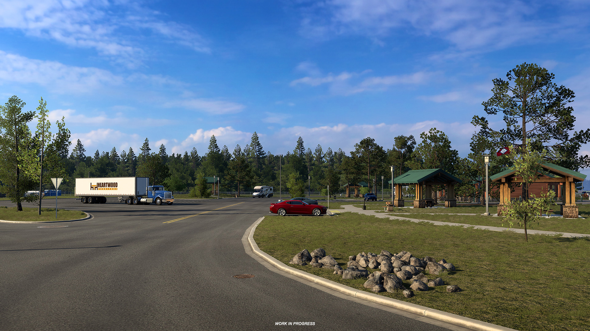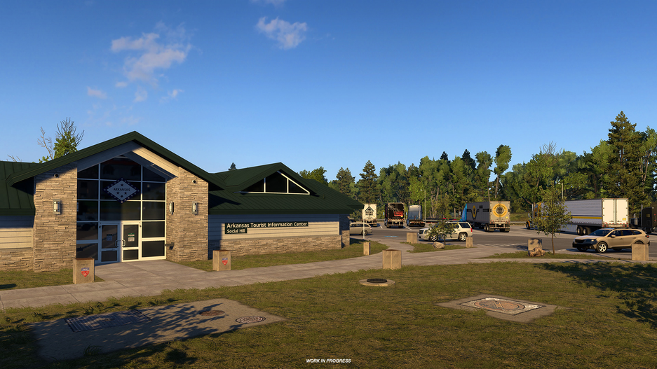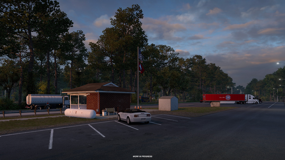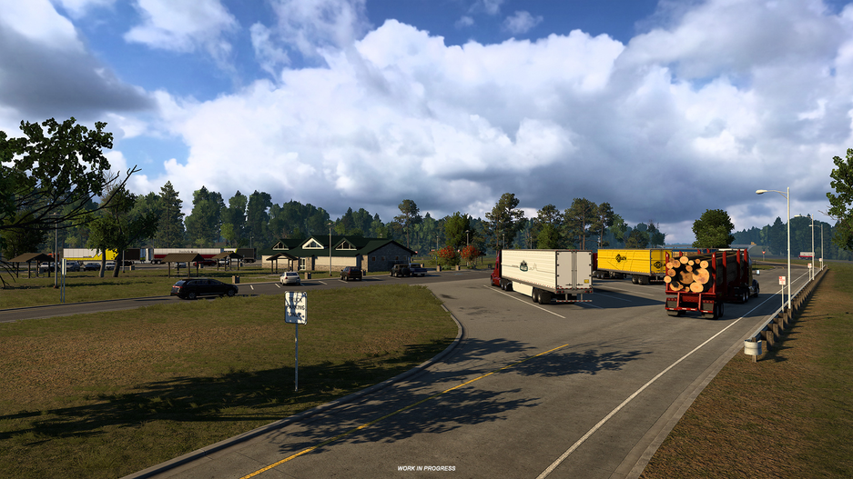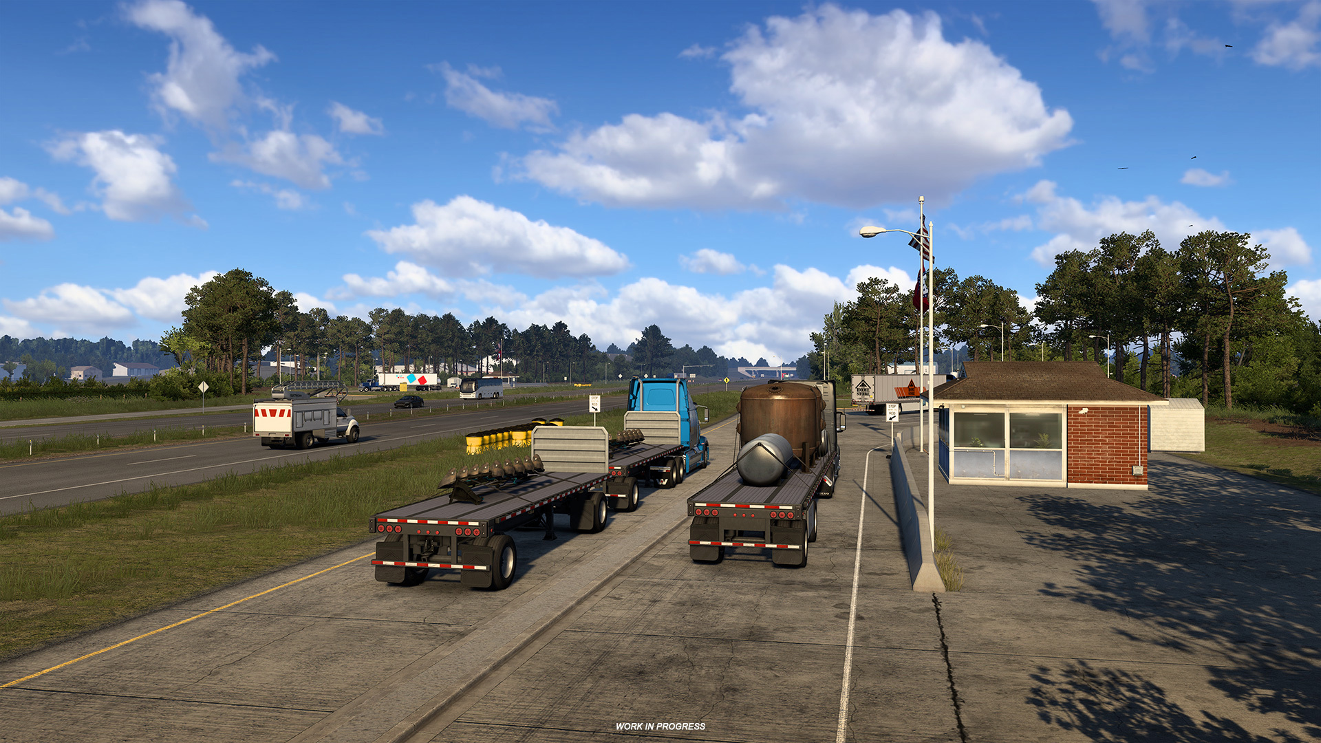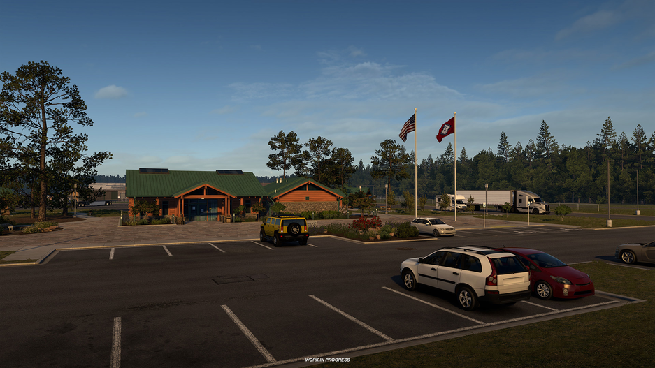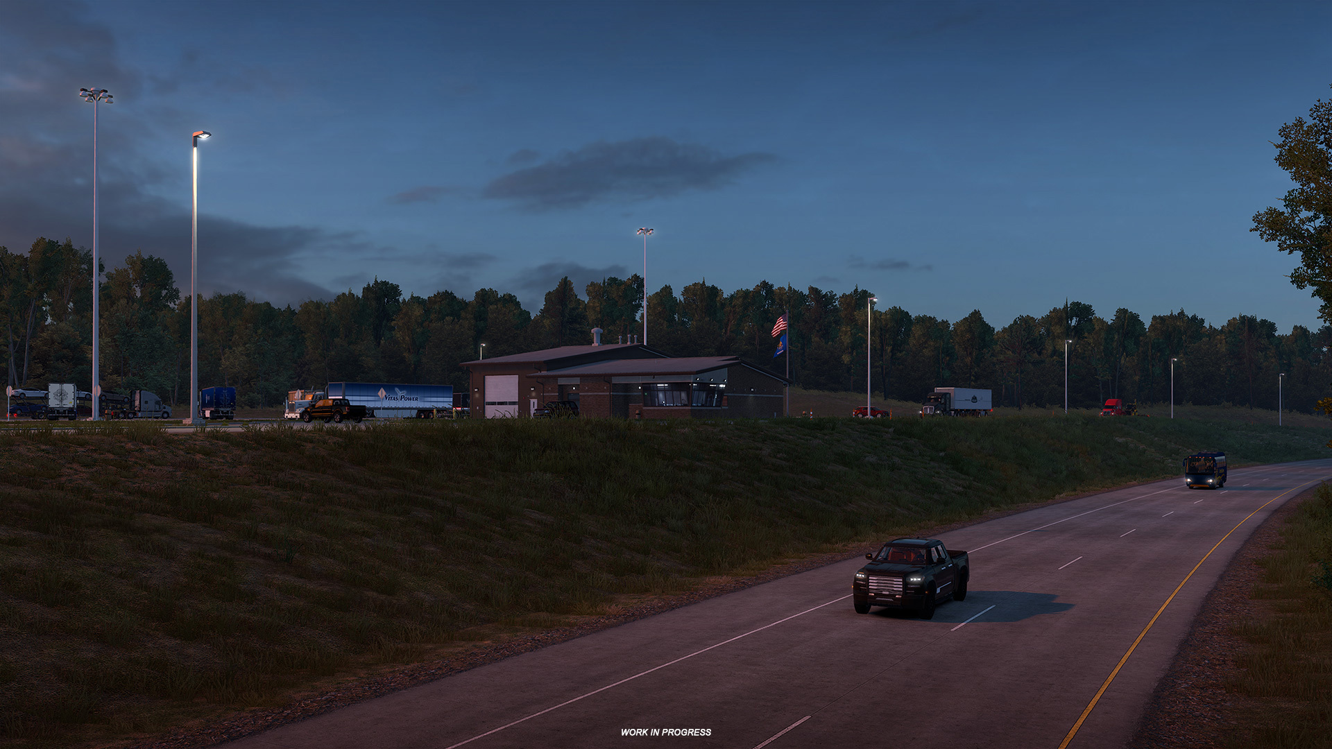 SCS Software в этот раз решила продемонстрировать местные станции взвешивания, зоны отдыха и так называемые Welcome Center («приветственный центр», обычно это информационный центр для туристов + организованная зона отдыха).