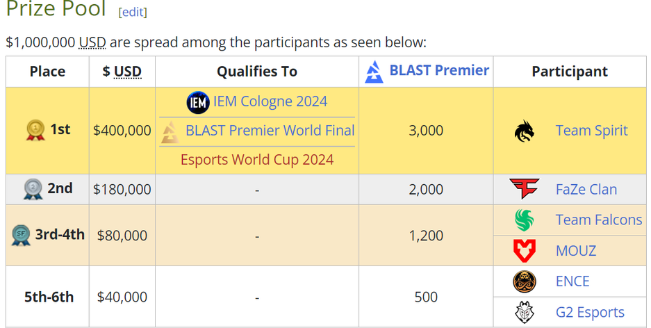 Победа Team Spirit обеспечила прямые инвайты на турниры: IEM Cologne 2024, BLAST Premier World Final, Esports World Cup 2024.