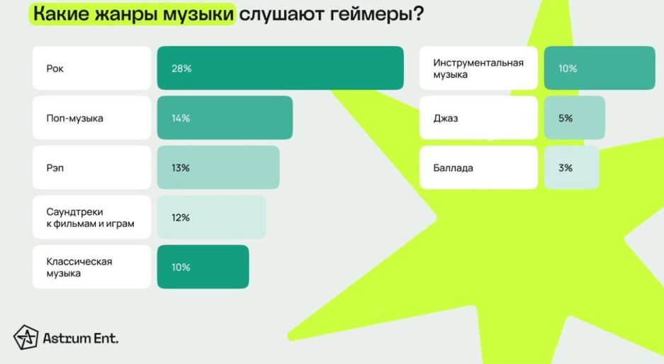 - Рок музыку предпочитают 28% геймеров