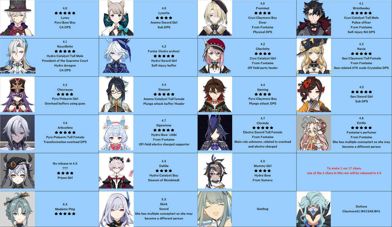 Предполагаемое расписание выпуска новых персонажей Genshin Impact в обновлениях 4.6 – 4.8: