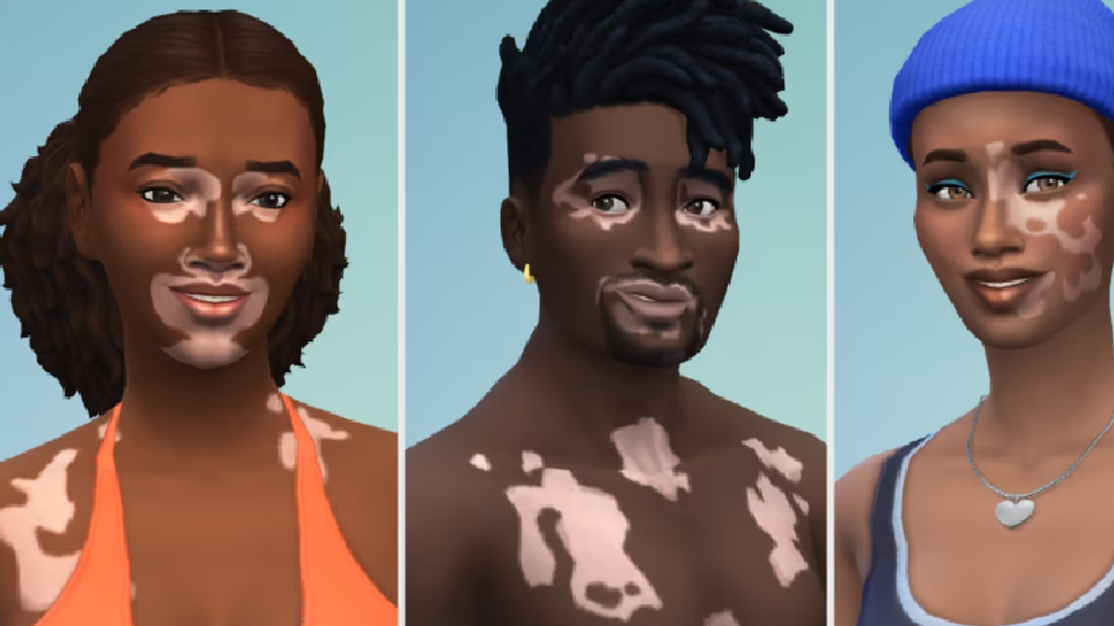 Для The Sims 4 художники Maxis представили 61 вариант витилиго для персонажей всех возрастов и любого цвета кожи. Цвет «пятен» витилиго меняется в зависимости от цвета кожи.