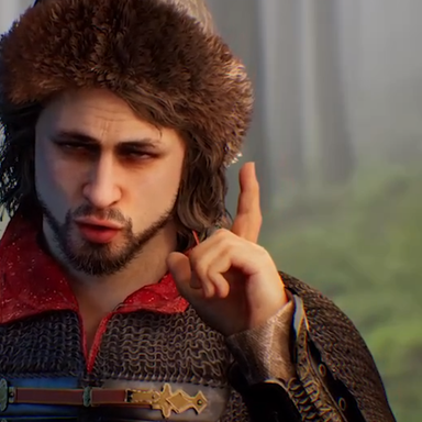 «Бояре, сегодня мы хотим поделиться с вами коротким видео. Нет, это не секретный образ Юрия в игре. Это, наверное, самый необычный противник, которого может встретить Юрий в своих приключениях. Человек ли он, зверь или что-то иное? Ответ на этот вопрос вы узнаете после релиза игры, который назначен на 4 апреля 2024 года».