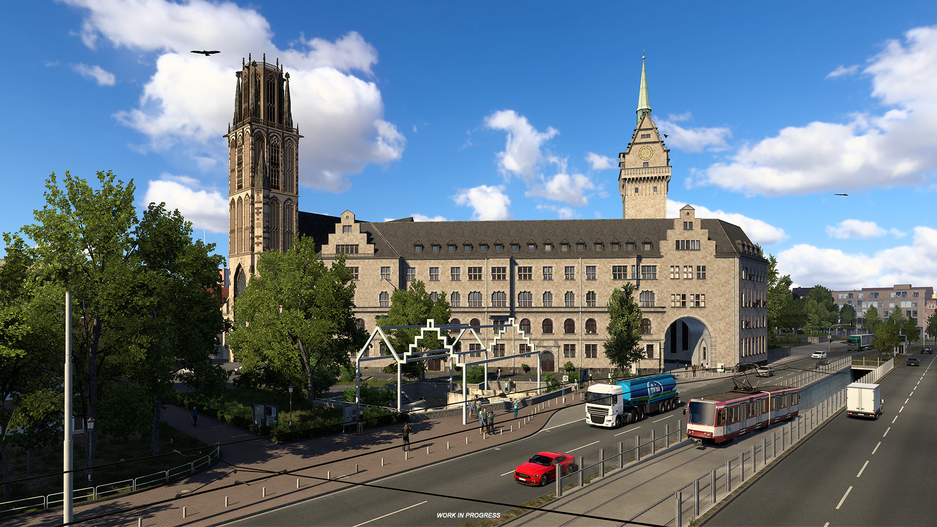 Работа по обновлению контента в Euro Truck Simulator 2 продолжается. Команда SCS Software приготовила новую подборку скриншотов, на этот раз в центре внимания города региона Рейн-Рур (Германия).