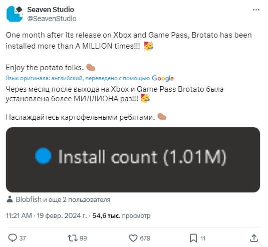 В Game Pass много инди-игр, созданных небольшими командами. Brotato от Seaven - одна из них и разработчик объявил о миллионе закачек.