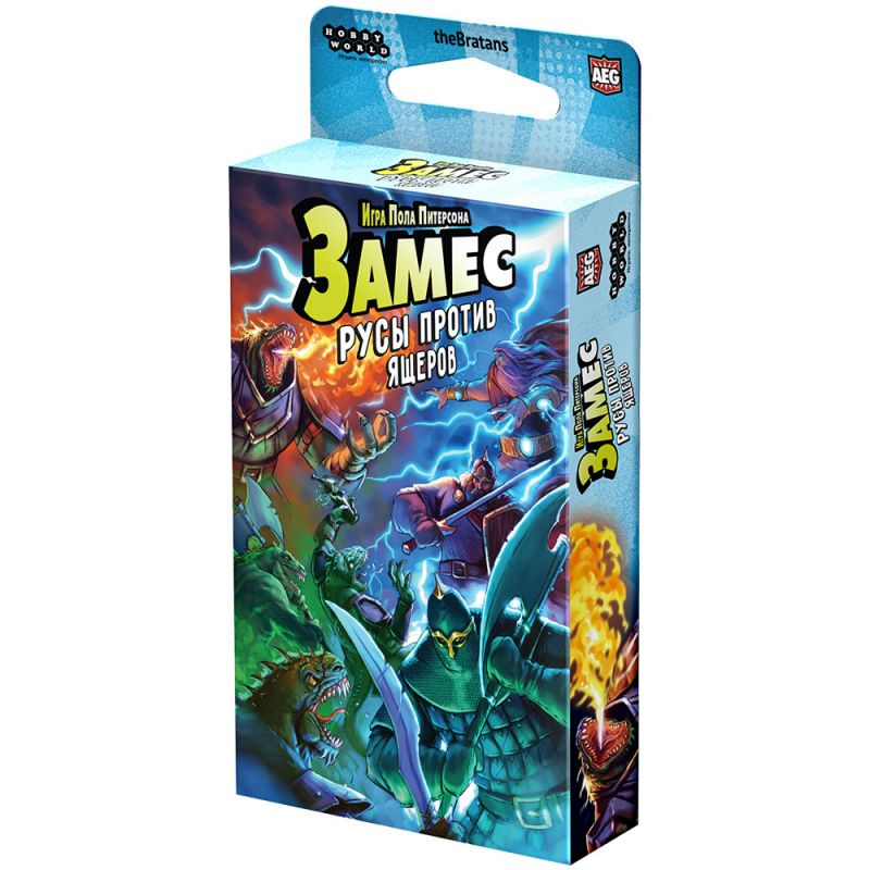 «В этой коробке вы найдёте две новые фракции для "Замеса" – легендарных русов и грозных ящеров. Добавьте их к базовому "Замесу", испейте водицы байкальской – и погнали! С новыми действиями и базами вы сможете захватить Гиперборею, вдарить славянским зажимом яйцами и много чего ещё. Во имя Тиранослава Мудрого!».