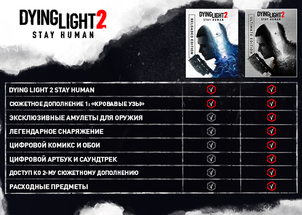 Появилось специальное издание Dying Light 2 Stay Human Reloaded Edition, в состав которого входит первое сюжетное дополнение Bloody Ties (или «Кровавые узы»).