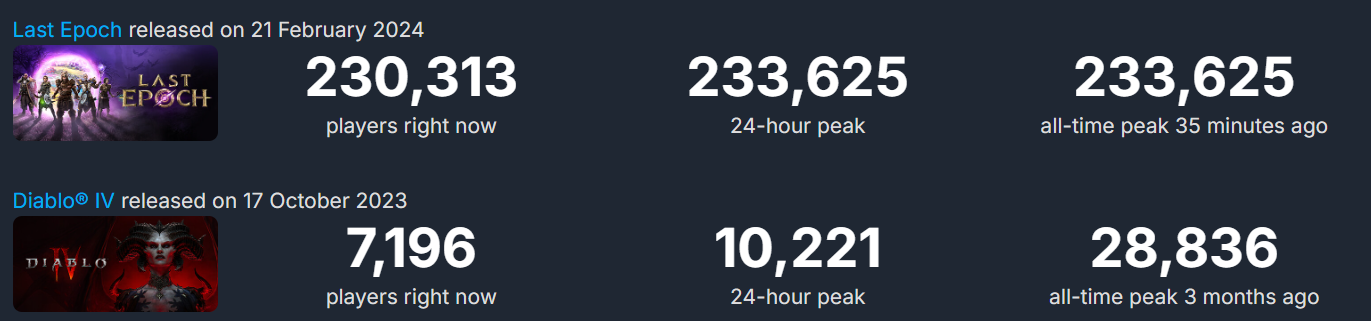 Diablo 4 добралась до Steam, но особо крупным хитом игра Blizzard так и не стала, зато сияет игра-конкурент Last Epoch. Подвинуться пришлось даже Path of Exile