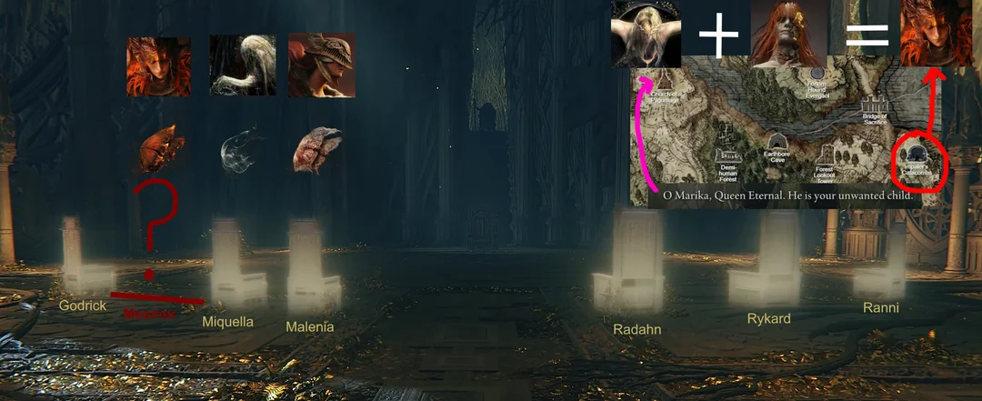 Похоже, что долго копаться ценителям лора Elden Ring не пришлось — спустя несколько дней объявился Dyorion, представивший свою теорию: по его мнению, Мессмер связан с некоторыми другими известными персонажами, он якобы может быть родственником Малении и Микеллы (к этому он пришел из-за их внешнего сходства).