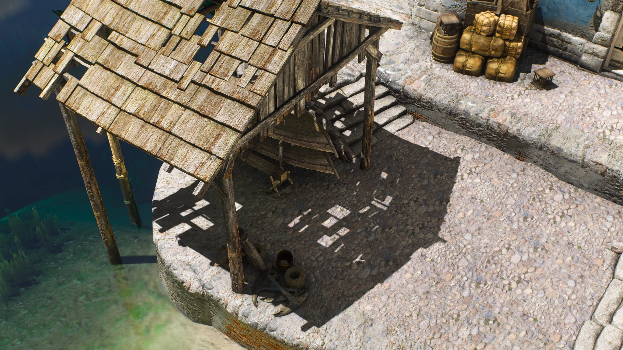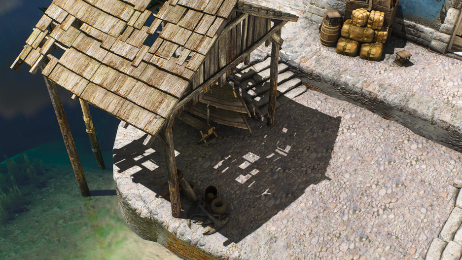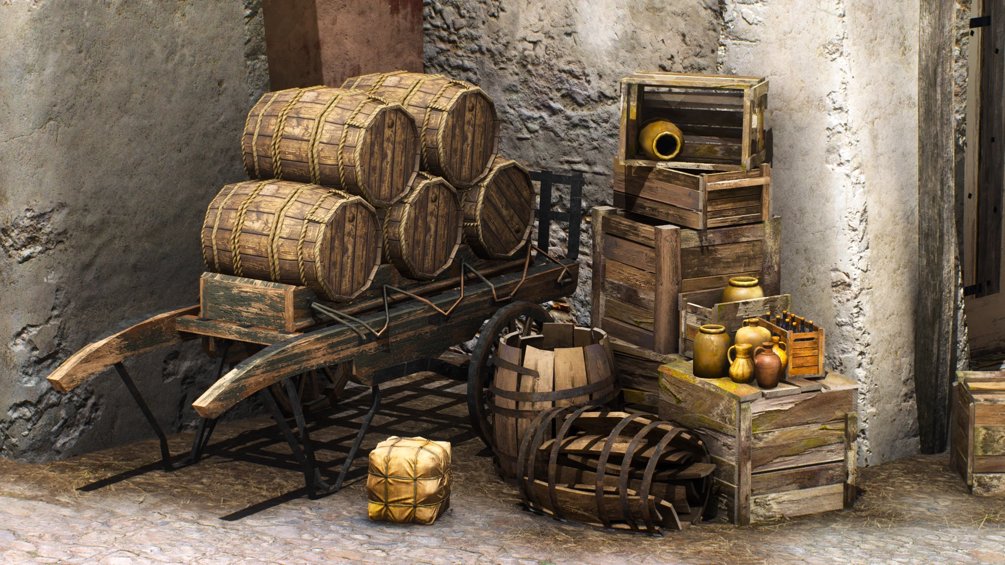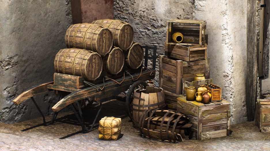 Например, сцена с бочками и ящиками до / после.