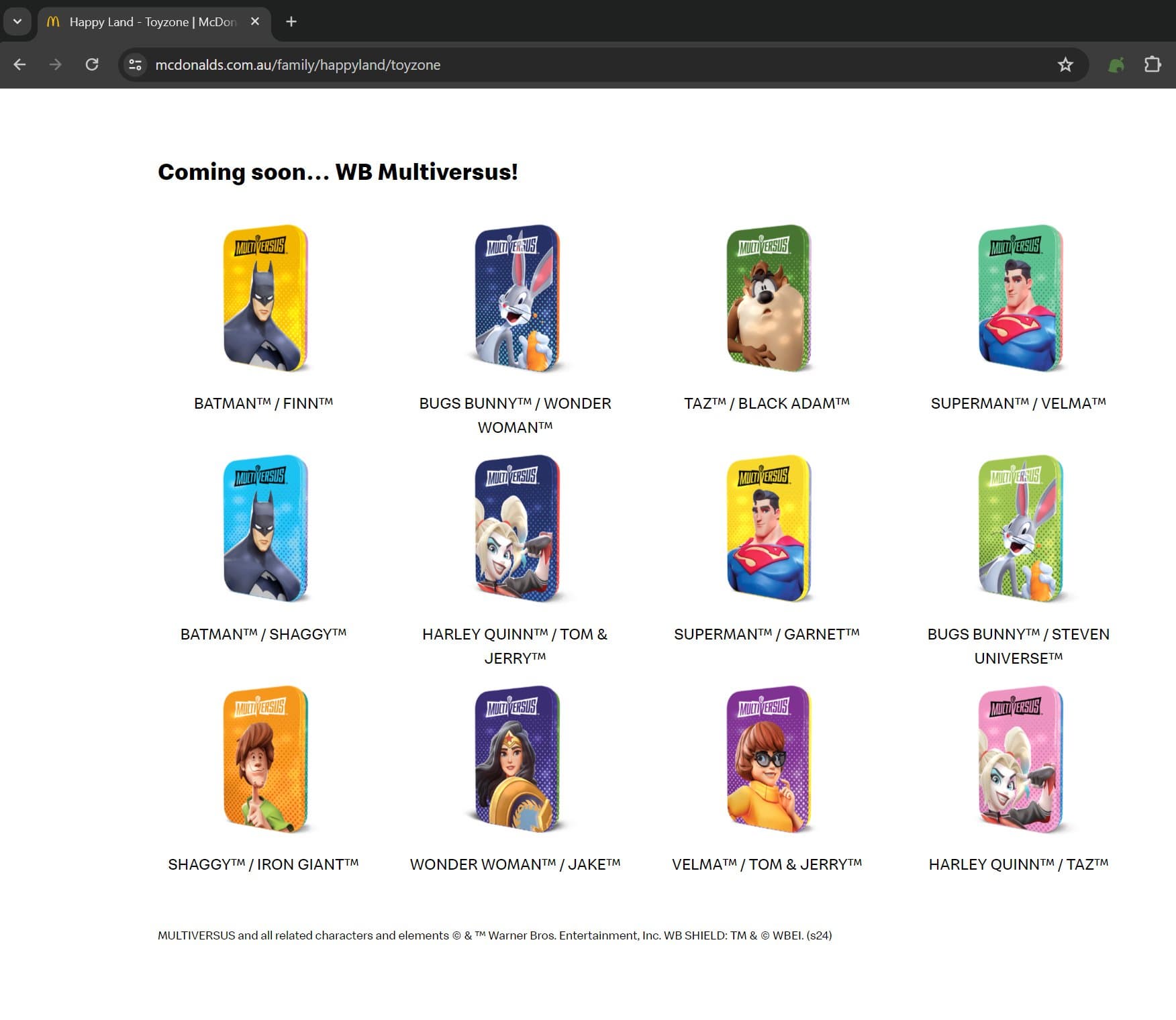 Журналист Эдмунд Тран обратил внимание на то, что страница Хэппи Мила австралийской сети по доставке быстрых углеводов в организм McDonald's обещает скорое возвращение WB MultiVersus.