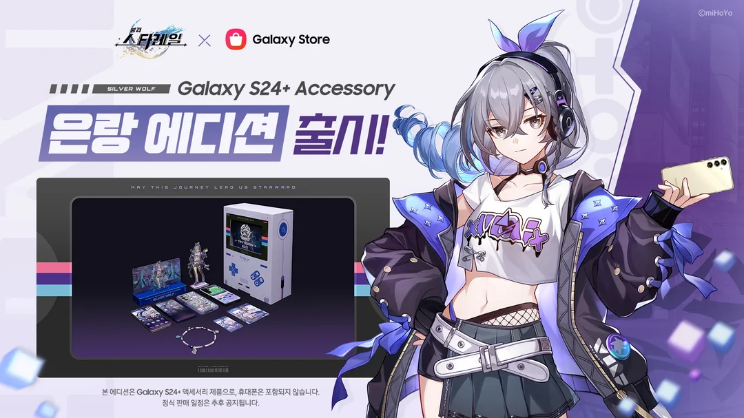 В стиле Серебряного Волка (Silver Wolf) — одной из героинь Honkai Star Rail — готовятся выпустить смартфон и набор аксессуаров. В сети появился баннер-анонс, а также превью готовящейся к релизу стильной продукции: смартфон Samsung Galaxy S24 и различные аксессуары.