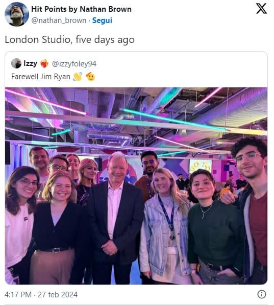 В сеть попала фотография Джима Райана в компании разработчиков London Studio. Многие фанаты поделились критическими сообщениями в связи с волной увольнений, объявленной Sony.
