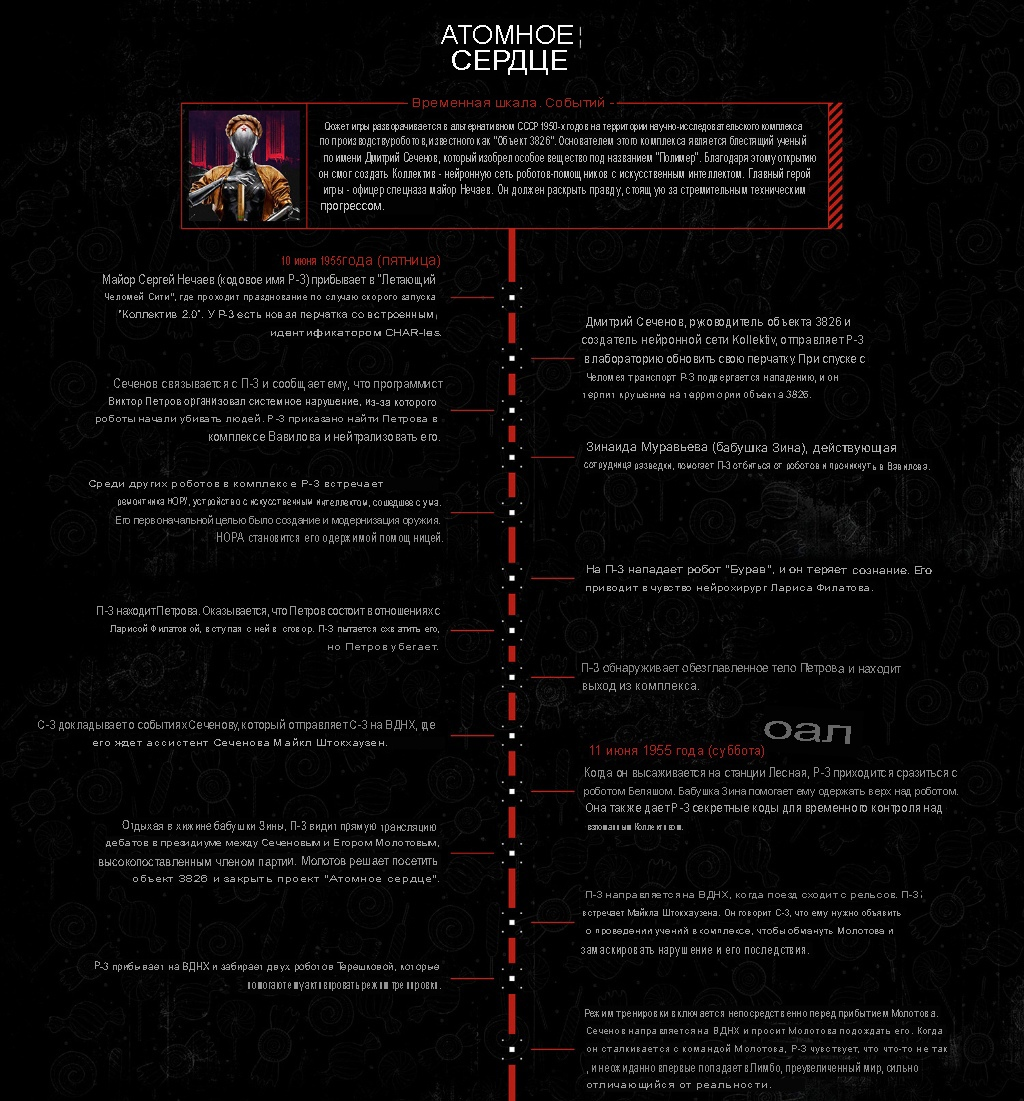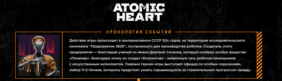 [ОБНОВЛЕНИЕ] с ощутимой задержкой, но всё же разработчики Atomic Heart опубликовали хронологию на ресурсе, который доступен и в России. Познакомиться с хронологией событий можно по следующей ссылке в VK, перевели на русский язык.