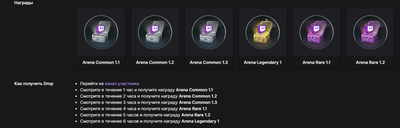 Как отмечают, события пройдут с 29 февраля по 3 марта, 16:00 МСК. В списке наград в Twitch-кампании: три Arena Common (1.1, 1.2, 1.3); Arena Legendary 1 и два Arena Rare (1.1 и 1.2). Для сбора всех наград необходимо смотреть трансляции в течение 6 часов.