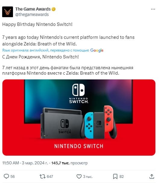 3 марта гибридной консоли Nintendo Switch официально исполнилось 7 лет, а она до сих пор продаётся, как горячие пирожки.