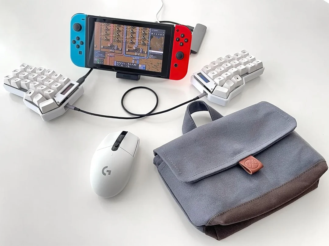 pabloescobyte опубликовал в сообществе Factorio фото своей «консоли-франкенштейна». Для улучшения пользовательского опыта он предлагает подключить к Nintendo Switch пару устройств: разделённую клавиатуру (собственной сборки), а также используется мышь.