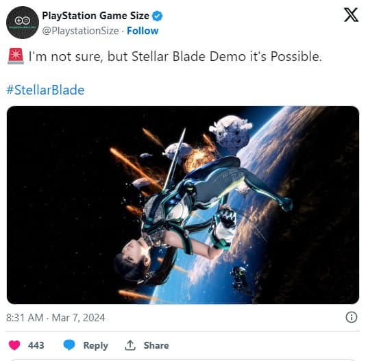 По словам информатора PlayStation Game Size, который регулярно делится предрелизной информацией о некоторых играх (в частности, размерами файлов), есть большая вероятность, что Stellar Blade получит демоверсию.