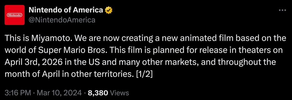 Стоит отметить, что в объявлении данный проект не позиционируют как сиквел The Super Mario Bros. Movie.