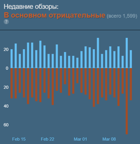 Судя по статистике за последние 30 дней, Starfield получает в Steam в основном отрицательные отзывы (общий рейтинг пока держится в категории «Смешанные» с 59% положительных).