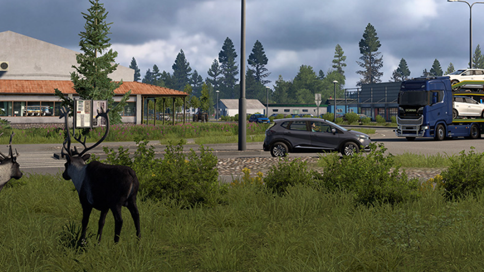 На одном из кадров DLC для Euro Truck Simulator 2 можно заметить не только местные красоты и другие автомобили, но и группу северных оленей, прогуливающихся недалеко от проезжей части.