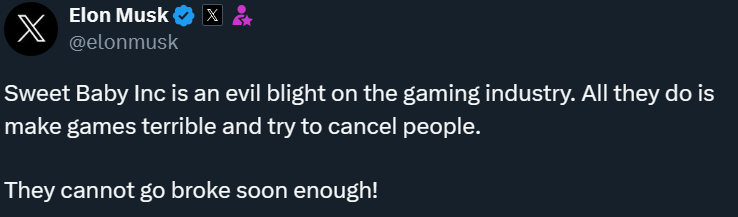 «Sweet Baby Inc – [чистое зло] для игровой индустрии. Всё, чем они занимаются — портят игры и пытаются отменить людей. Почему они ещё не разорились!».