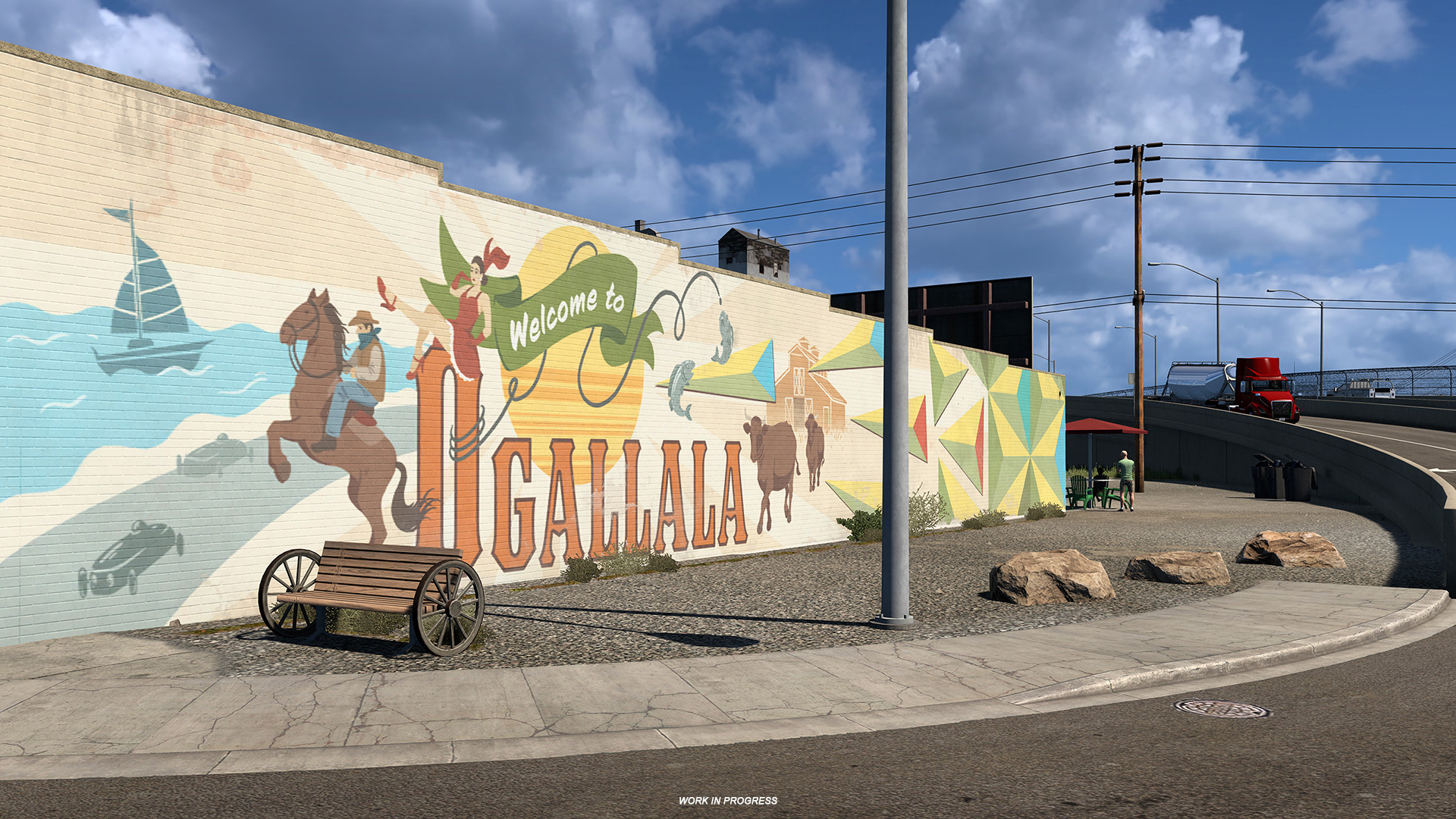 SCS Software представила несколько скриншотов, на этот раз в центре внимания оказалось уличное искусство — граффити. Как всегда это кадры из серии «work in progress», т.е. не отражают финальное качество контента.