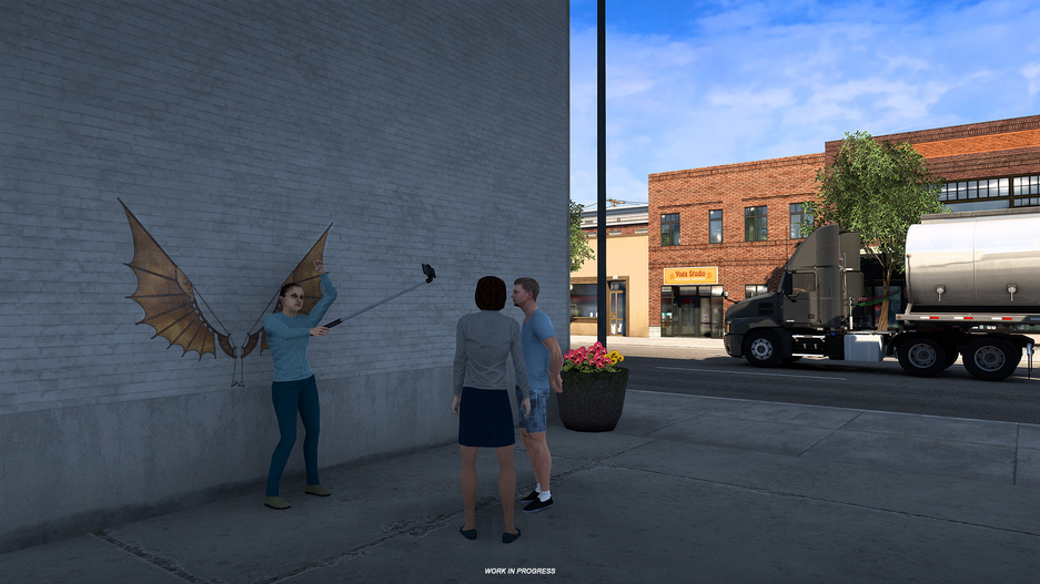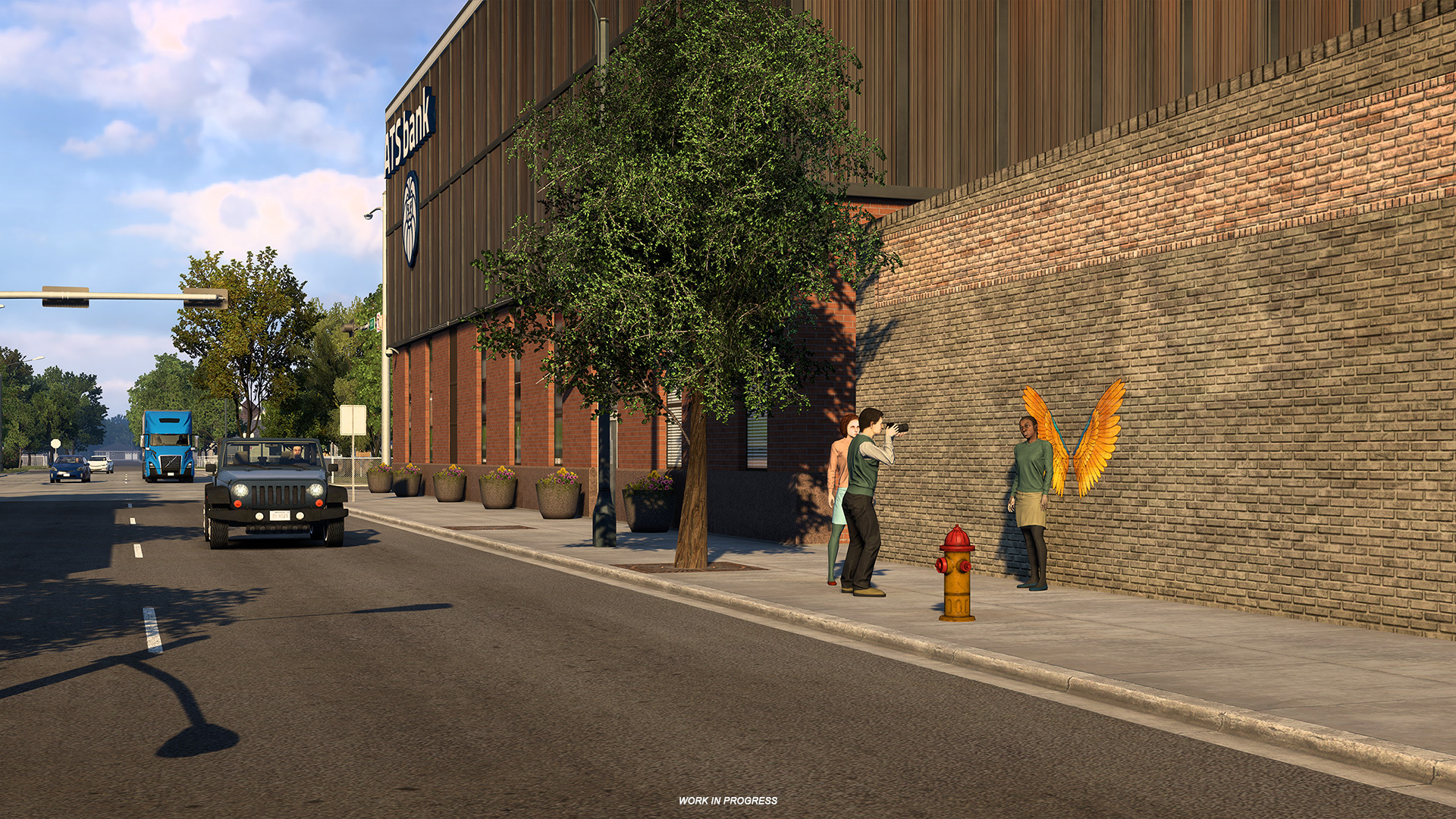 На некоторых кадрах можно заметить часть проекта «Global Angel Wings Project» (Wings Across the Heartland) — изображения крыльев на стенах: «Они были нарисованы, чтобы напомнить человечеству, что мы — ангелы на этой земле. Это интерактивный паблик-арт огромного размера, крылья, с которыми люди фотографируются и таким образом становятся частью произведения искусства». В American Truck Simulator возле них порой встречаются люди, делающие фото.