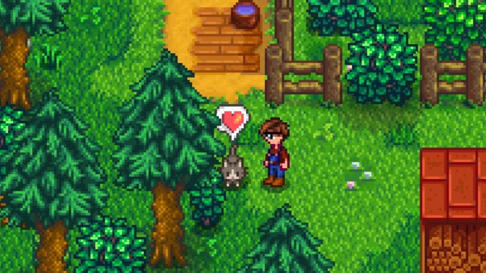 Также ConcernedApe позаботился о взаимодействии с питомцами. Иногда складывается ситуация, когда персонаж игрока сталкивается с питомцем и чтобы «пройти мимо» требуется 1.5 секунды — он решил вдвое сократить затрачиваемое время: