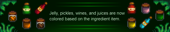 ConcernedApe рассказал о механике смены цвета еды: «Желе, консервы, вина и соки теперь окрашиваются в зависимости от ингредиента».