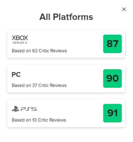 Некоторые ищут в этом заговор, отмечая, что версия для Xbox Series X|S набрала 87 баллов. Но сейчас это легко объясняется – у Xbox-версии гораздо больше рецензий, поэтому оценка может измениться.