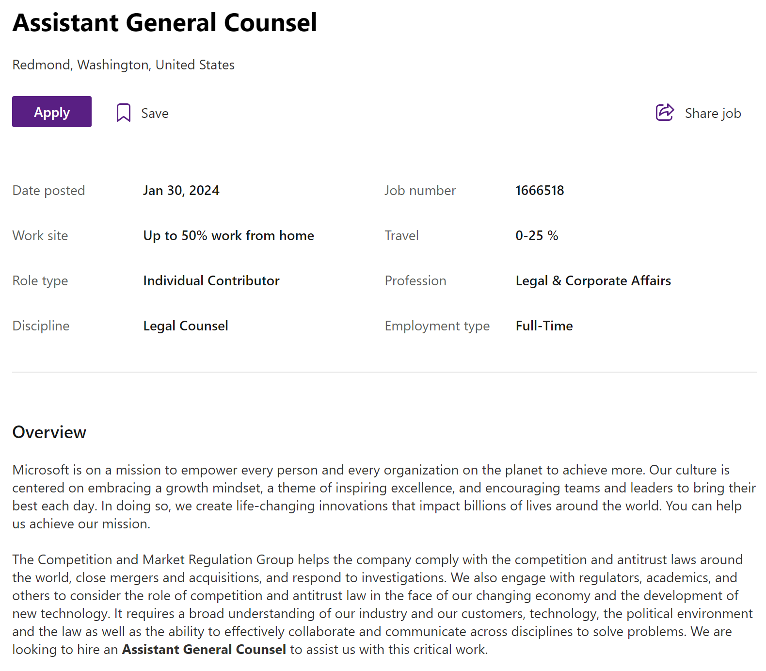 Пользователь IdleSloth84_ обратил внимание на то, что Рима Алайли (Rima Alaily) — корпоративный вице-президент группы Microsoft по вопросам конкуренции и регулирования рынка — приглашает на должность помощника главного юрисконсульта; он напомнил, что именно она возглавляла юридическую группу Microsoft при приобретении Activision Blizzard (+ King).