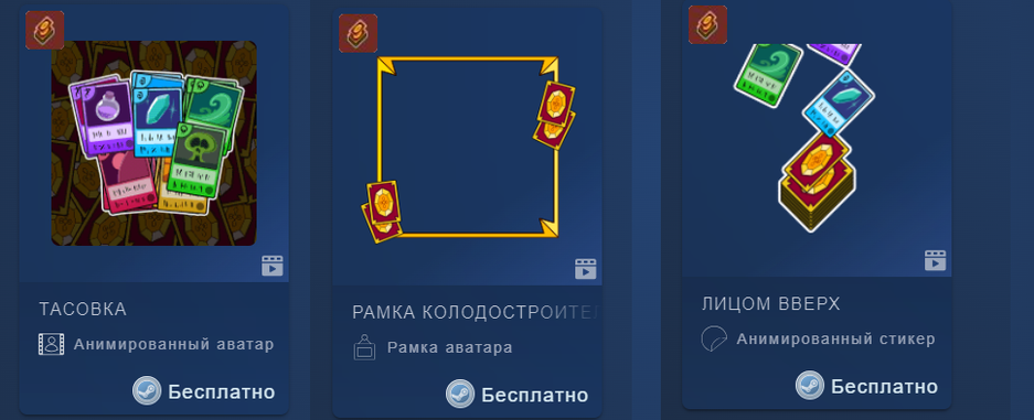 Можно бесплатно забрать анимированный стикер Card Flip; рамку аватара Deckbuilder Frame и анимированный аватар Deck Shuffle; забрать можно по ссылке: https://store.steampowered.com/points/shop/app/2842700
