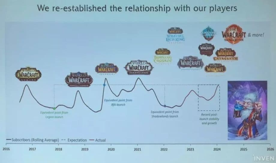 Во время конференции разработчиков генеральный директор серии World of Warcraft Джон Хайт представил график, иллюстрирующий текущую популярность MMO Blizzard. Хотя конкретных цифр не представили, игровое сообщество проанализировало график и оценило количество подписчиков.